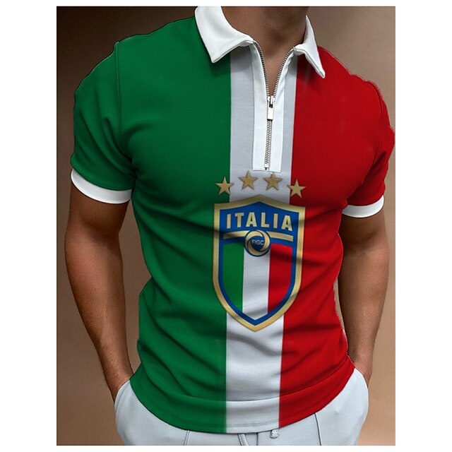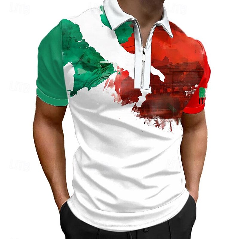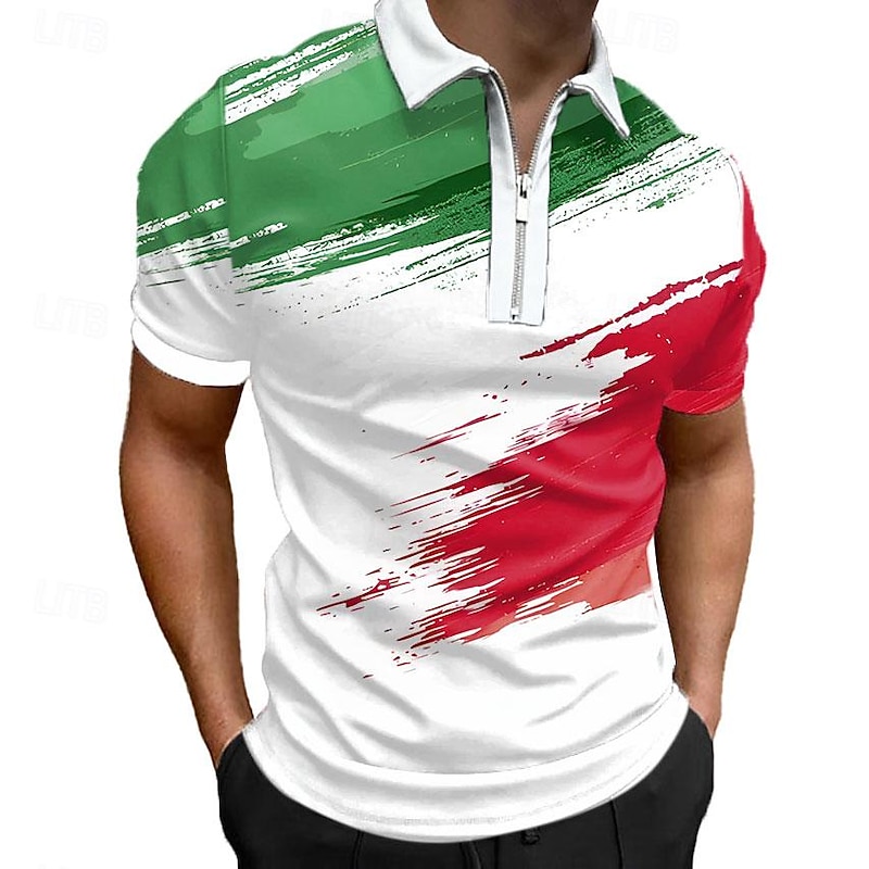 More information about Men's Veterans Patriotic Zip Polo Shirts Golf Shirt Short Sleeve Polo Shirts Collared Shirts Casual Streetwear Vacation Wear Party Outfits 3D Print Quarter Zip Polo White Army Green Red