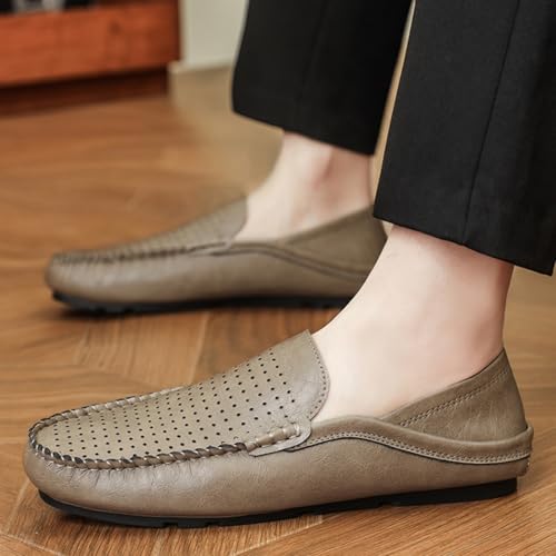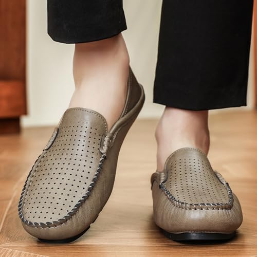 Men's Genuine Leather Penny Loafers Slip-On Shoes Low Profile Sole for Daily Commute Casual Wear Driving Walking 6