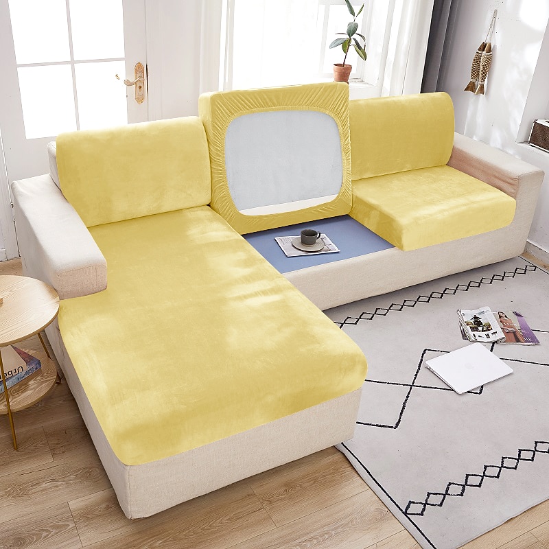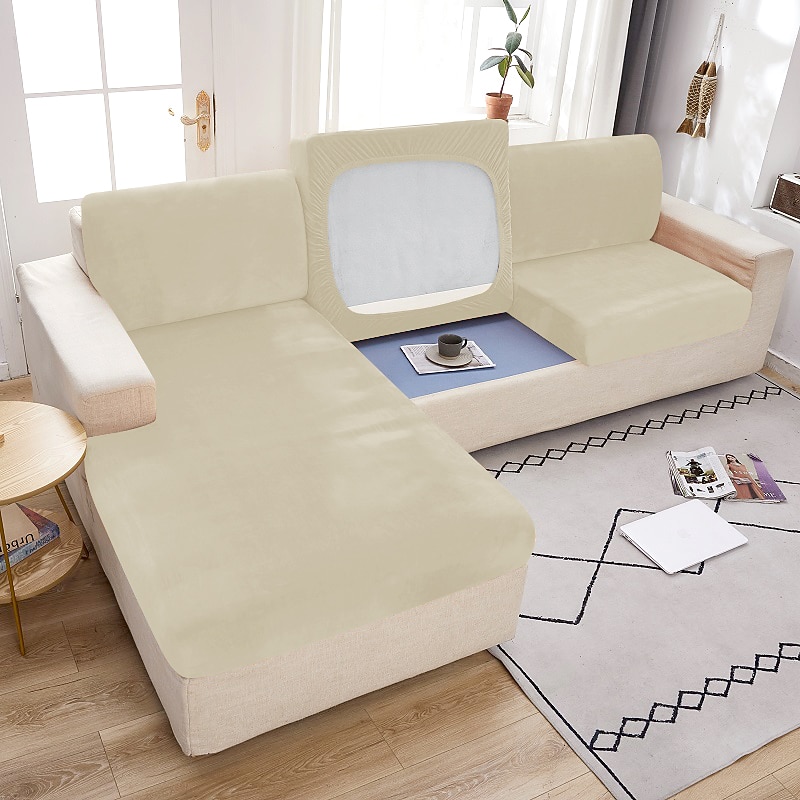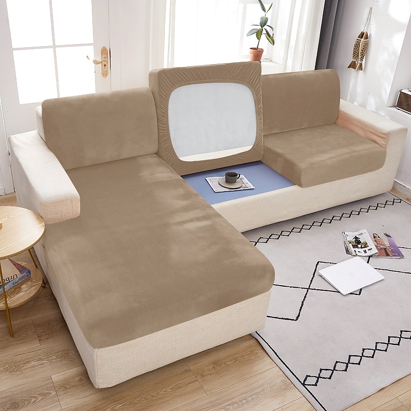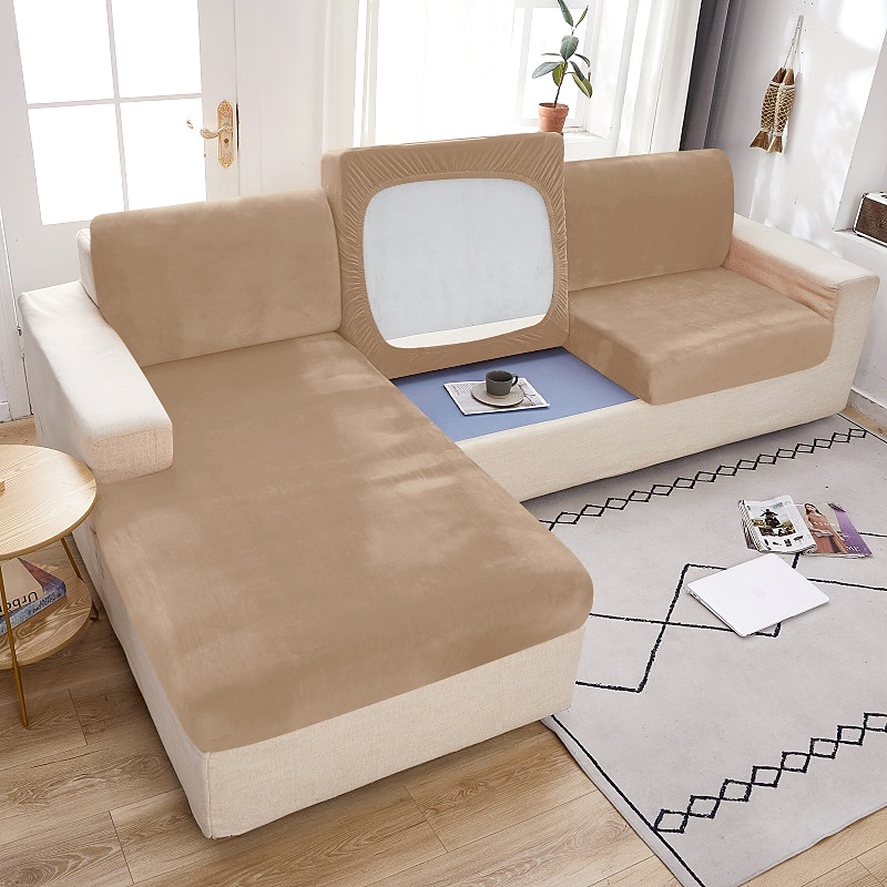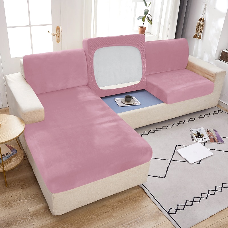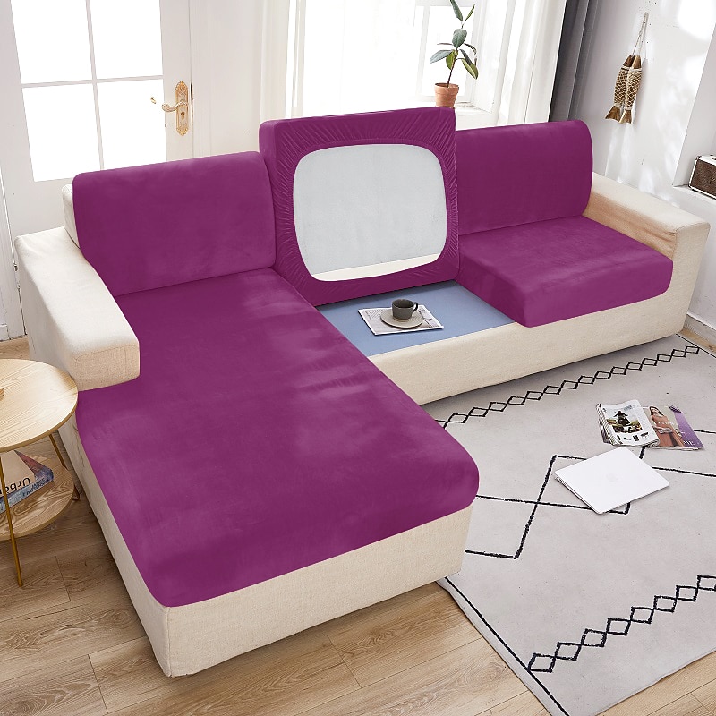Stretch Couch Covers Sofa Seat Burgundy Cushion Cover Velvet For Dogs Pet, Magic Sofa Cover Sectional Sofa Slipcover for Love Seat, L Shaped, 3 Seater, Washable Protector