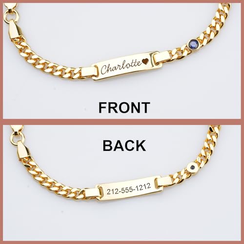 HOT ! Personalized Baby Birthstone Name Bracelet with 18k Gold Plated Adjustable Length in Rose Gold, Argent, Gold