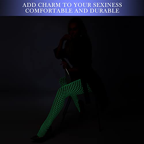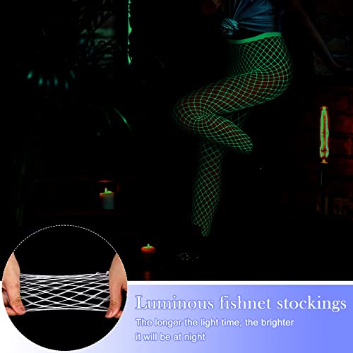 Foaincore 2pcs Women Glow in the Dark Fishnet Stockings Luminous Glowing Fishnet Socks High Waist Tights Stockings Glowing High Waist Pantyhose for Party Stage Performance Halloween cosplay Dress up 6