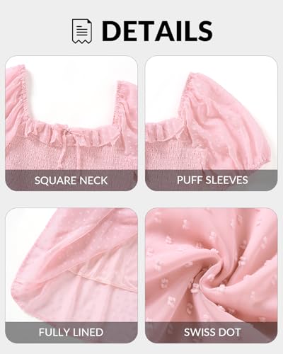 Plus Size Summer Dresses - Swiss Dot Smocked Square Neck Puff Sleeves Boho Flowy A Line Long Maxi Wedding Guest Dress 5