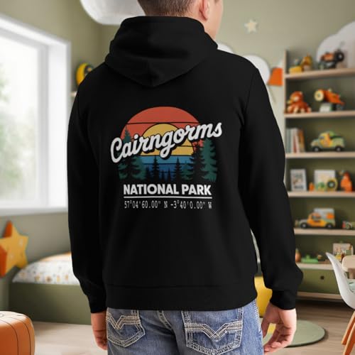 HOT ! Kids Cairngorms National Park Scotland UK with GPS Location Boys Girls Lightweight Kangaroo Pocket Fleece Hoodies