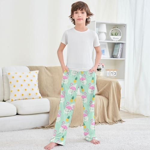 Boy's Pants Tropical Plant Pink Flamingos Jogger Pants Elastic Waist Long Bottoms Trousers with Pockets 6-14 Years 4