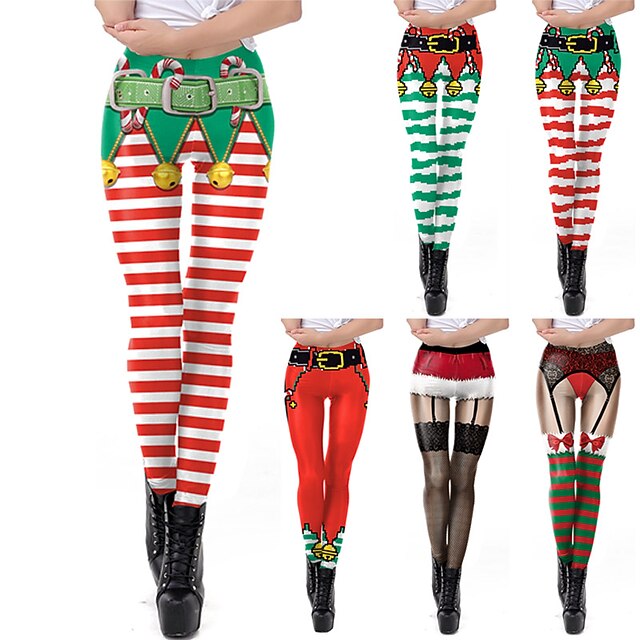 Santa Claus Elf Pants Leggings Women's Christmas Dailywear Adults Christmas Masquerade Christmas Eve Christmas Party Pants 10