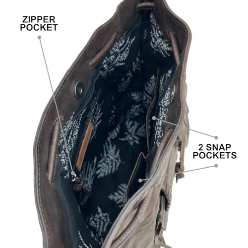 More information about Myra Bag Drawstring Leather Bucket Bag for Women - Bohemian Crossbody Shoulder Purse