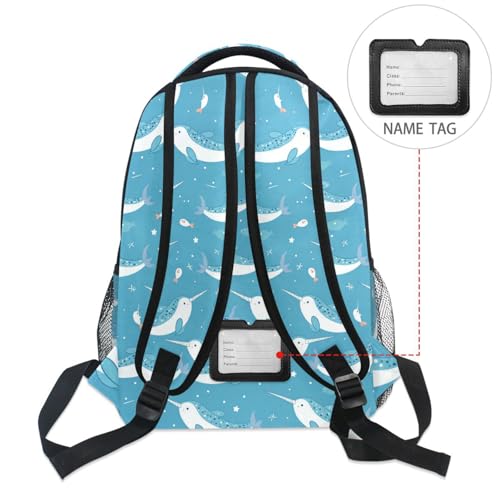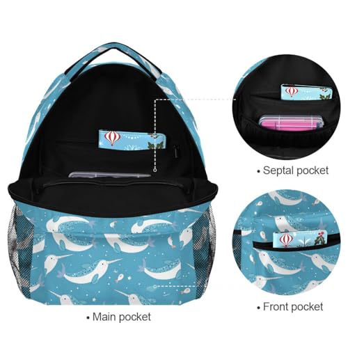 Wuskid Narwhals Backpack Bookbags Daypack Kids Girls Boys Blue Backpacks Laptop Bags School Purse Travel Sports Water Resistant Men Women M