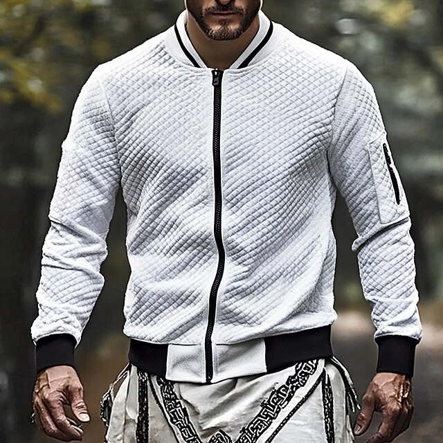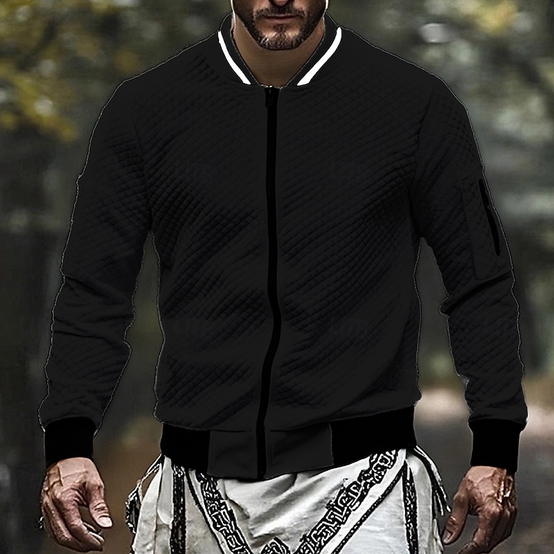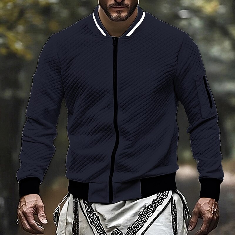 More information about Men's Sweatshirt Full Zip Sweatshirt Black White Wine Navy Blue Light Grey Standing Collar Plain Jacquard Zip Up Sports & Outdoor Daily Holiday Polyester Streetwear Basic Casual Fall Winter Clothing