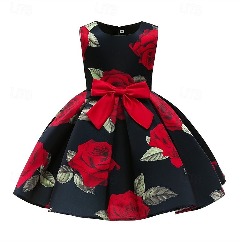 Why Choose Kids Girls' Party Dress Floral Sleeveless Performance Birthday Tie Knot elegant Sweet Polyester Knee-length Party Dress Swing Dress A Line Dress Summer 4 years+ Black White?