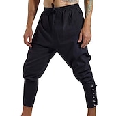 More information about Men's Trousers Summer Pants Straight Pocket Elastic Waist Leg Drawstring Solid Color Comfort Breathable Ankle-Length Daily Stage Linen / Cotton Blend Vintage Casual Black Green Micro-elastic