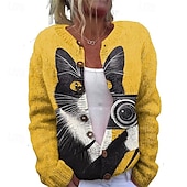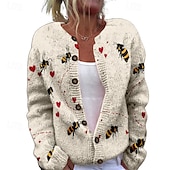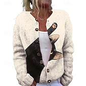 More information about Women's Sweater Cardigan Fashion Streetwear Daily Animal Ribbed Open Front Knitted Print Long Sleeve Long Tops Knit Holiday Going out Weekend Yellow Khaki Fall Winter