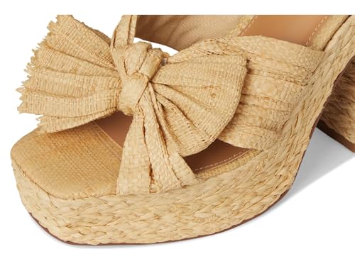 • DISTINCTIVE DESIGN: Experience a one-of-a-kind touch with the chunky woven platform heel; Crafted with a raffia upper for a sleek, natural look.