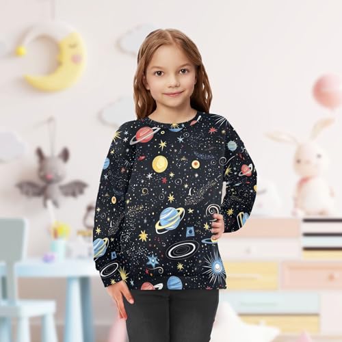 JUNZAN Space Starry Sky Cosmic Planets Little Kids Hoodie Sweatshirt Long Sleeve Sweatshirt With Hoodie Camping 4T 5
