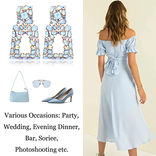Flyonce Rectangle Dangle Earrings for Women, Rhinestone Crystal Geometric Statement Earring Fashion Jewelry 7