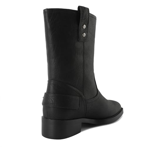Mettesally Women Mid Calf Boots Chunky Low Heel Ankle Boots Riding Motorcycle Fall Boots 1.4 Inch
