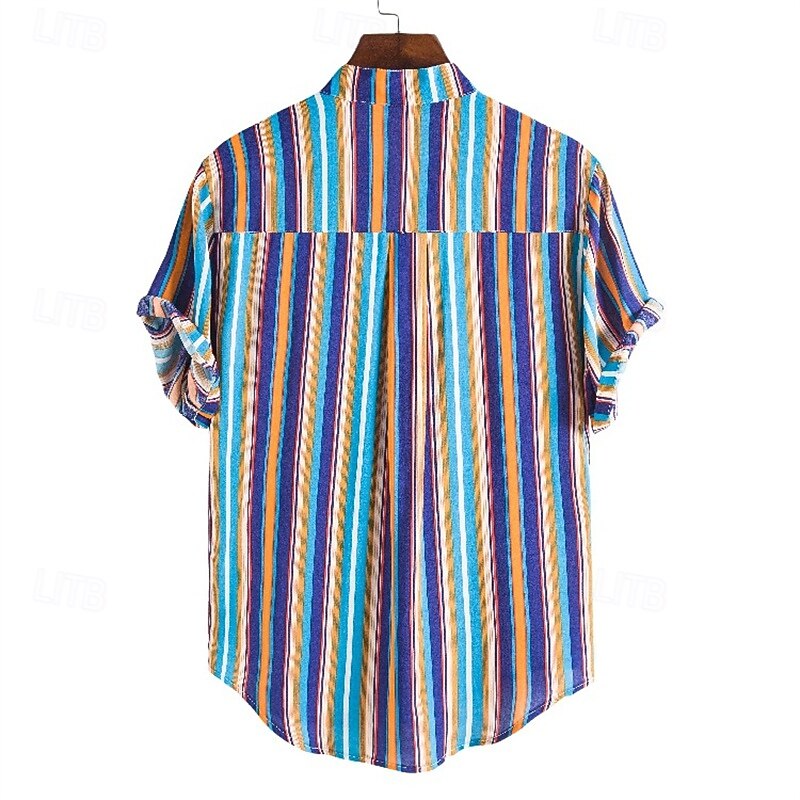 Men's Shirt Popover Shirt Summer Shirt Casual Shirt Beach Shirt Light Yellow Yellow Red Blue Dark Blue Short Sleeve Stripes Band Collar Vacation Hawaiian Pocket Clothing Apparel Cotton Blend Fashion 7