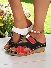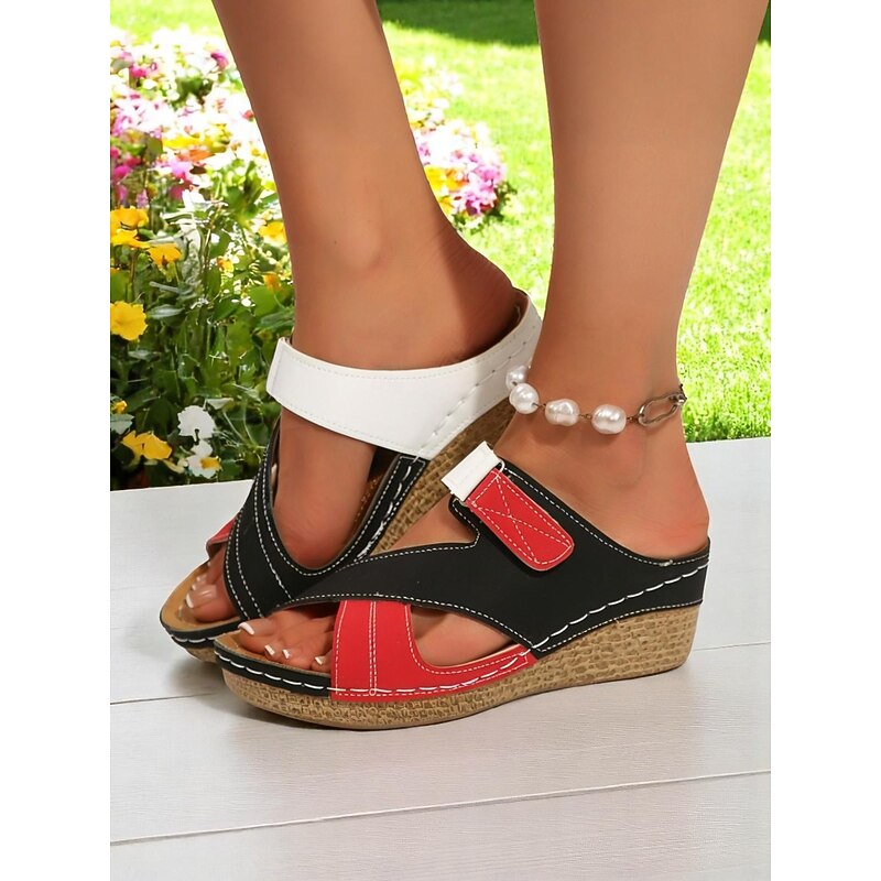 Women's Red and Black Wedge Sandals - Comfortable and Stylish with Adjustable Strap, Perfect for Casual Wear and Relaxed Day Trips 1