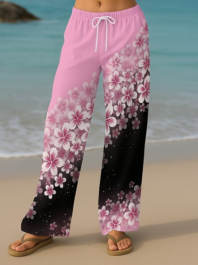 More information about Women's Culottes Wide Leg Vacation Vintage Ethnic Style Full Length High Waist Floral Graphic Quick Dry Breathability Soft Inelastic Formal Outdoor Vacation Yellow Pink Blue Purple Summer Spring