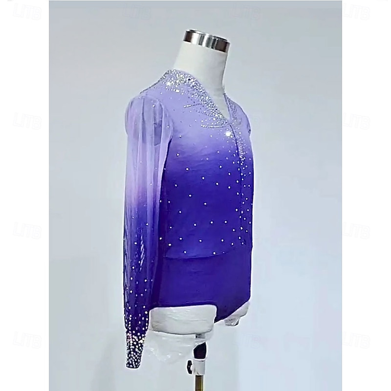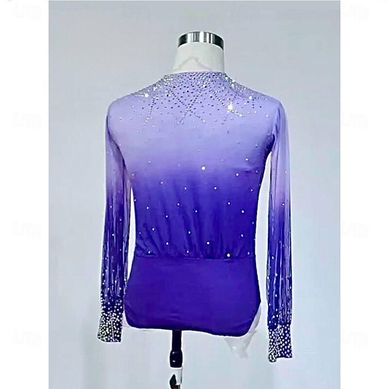 More information about Figure Skating Top Men's Boys' Ice Skating Tops Purple Patchwork Spandex High Elasticity Training Competition Skating Wear Classic Crystal / Rhinestone Long Sleeve Ice Skating Figure Skating