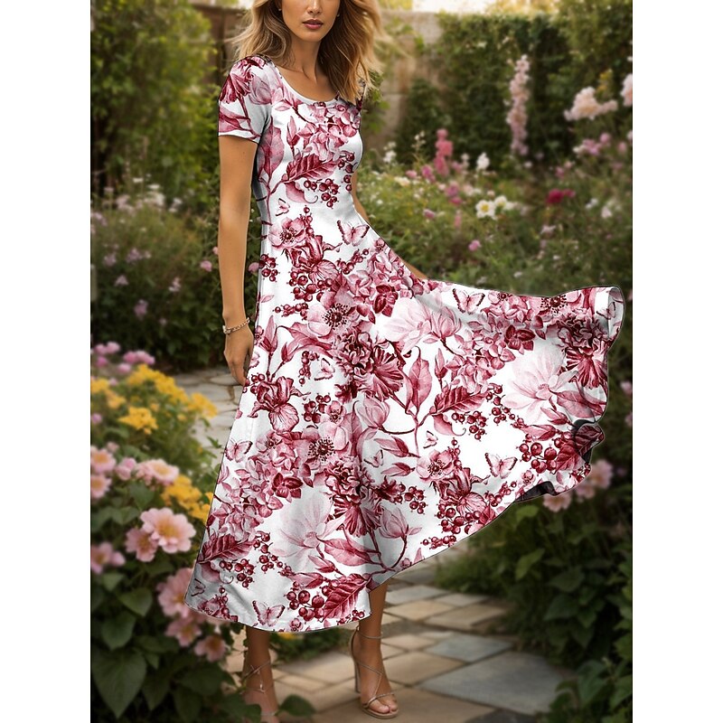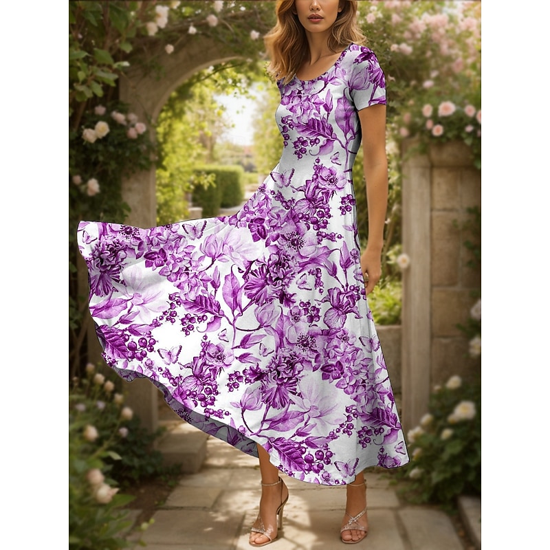 This Women's Maxi Dress Casual Dress Sundress A Line Dress Summer Dress Elegant Vacation Vintage Regular Fit Floral Graphic Short Sleeve Square Neck Scoop Neck Yellow Red Blue Purple Summer Spring combines elegant design with practical functionality. Every detail has been carefully considered to ensure you get the finest possible experience. The finest construction means this product will serve you well for years to come.