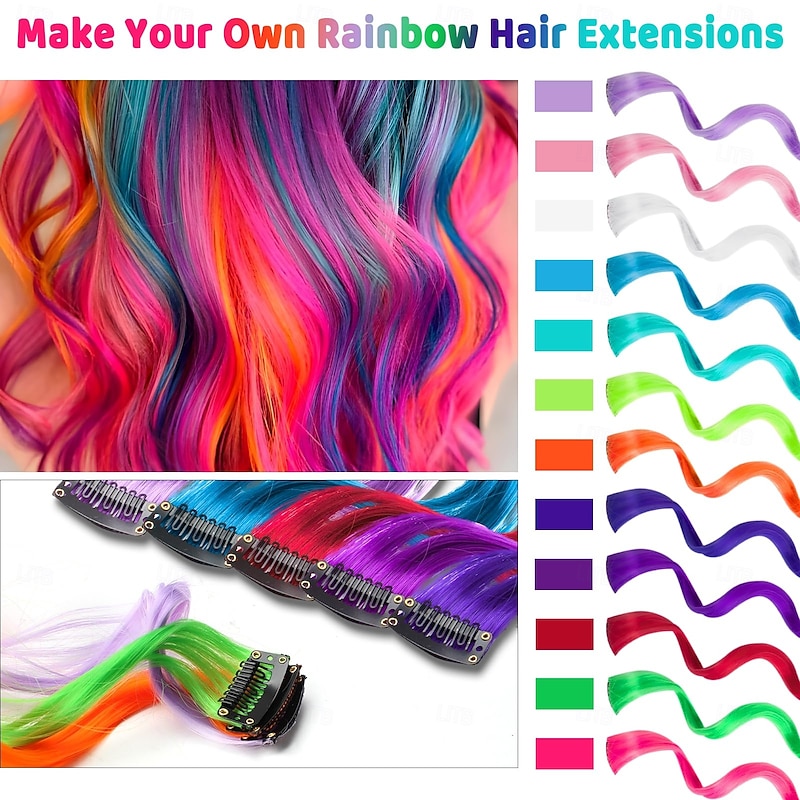 $11.99 - 12 PCS Colored Hair Extensions for Kids, Curly Wavy Synthetic Hairpieces Clip in Rainbow Neon Party Highlights, Colorful Hair Accessories for Girls Women 17 Inch 2025. Shop for cheap Clip in Extensions online? Buy at lightinthebox.com on sale today!