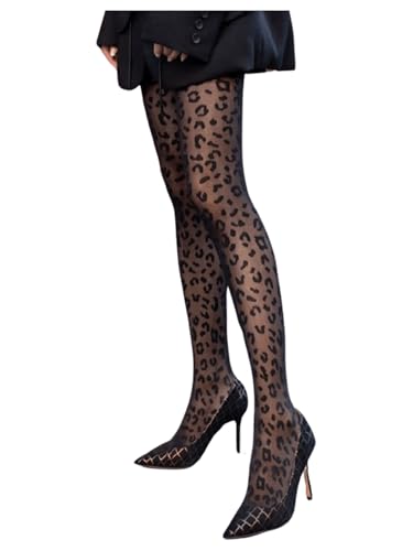 WDIRARA Women's Leopard Print Tights Sheer Mesh Thigh High Pantyhose Stockings 5