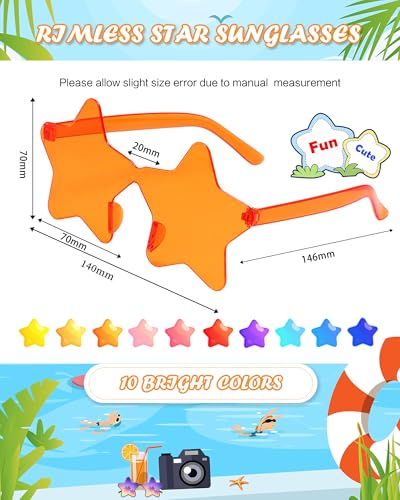 • Trendy & Playful Design: Bright candy-colored star frames add a pop of fun to any outfit while filtering glare. The frameless, novel look keeps these party glasses fashion-forward and eye-catching, so you’ll stand out effortlessly