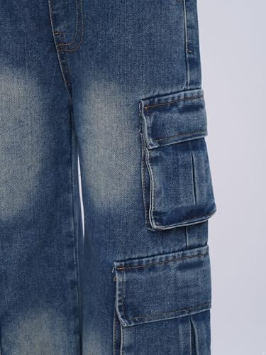 Kids Girls Casual Cargo Denim Pants High Waist Loose Fit Wide Leg Jeans Y2K Trousers with Multi Pockets 6