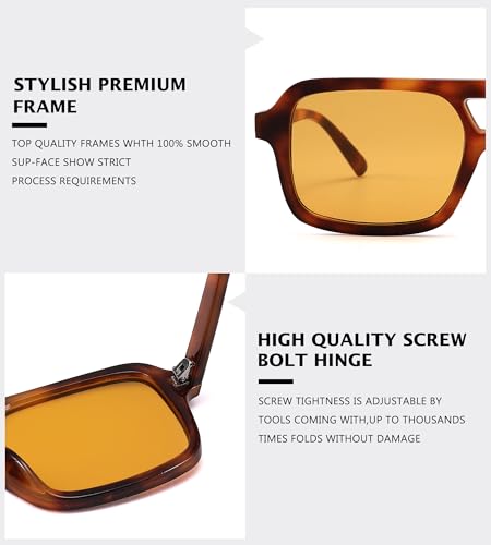• NARROW SQUARE AVIATOR STYLE – Classic 70s retro square design, unique double bridge frame fits all face shapes, stylish and bold color scheme, yellow tortoise frame orange lenses are a bestselling color