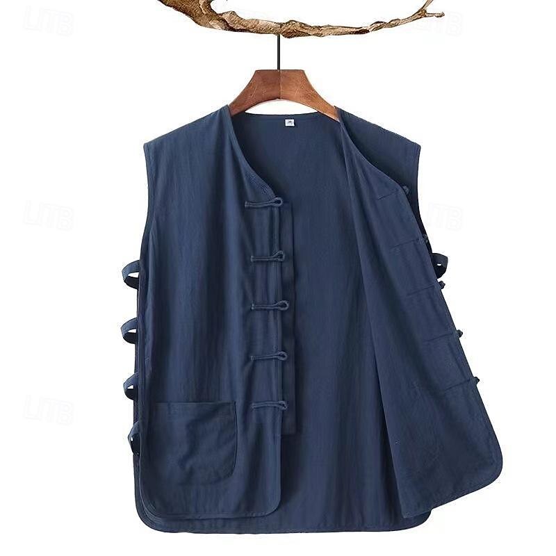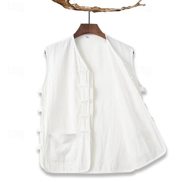 More information about Men's Vest Gilet Daily Vacation Beach Vintage Fashion Spring & Summer Button Pocket 85% Cotton Breathable Comfortable Plain Single Breasted One-button V Neck Regular Fit Black White Burgundy Navy Blue