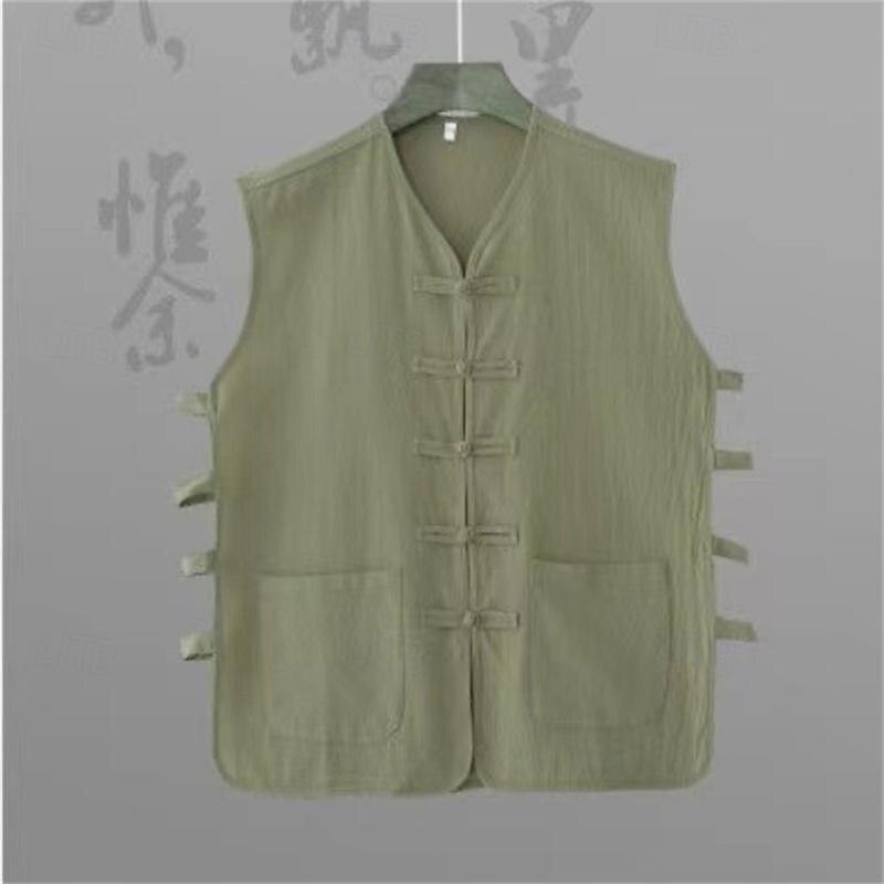 Men's Vest Gilet Daily Vacation Beach Vintage Fashion Spring & Summer Button Pocket 85% Cotton Breathable Comfortable Plain Single Breasted One-button V Neck Regular Fit Black White Burgundy Navy Blue 9