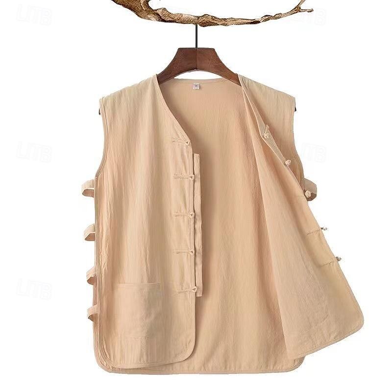 Men's Vest Gilet Daily Vacation Beach Vintage Fashion Spring & Summer Button Pocket 85% Cotton Breathable Comfortable Plain Single Breasted One-button V Neck Regular Fit Black White Burgundy Navy Blue 8