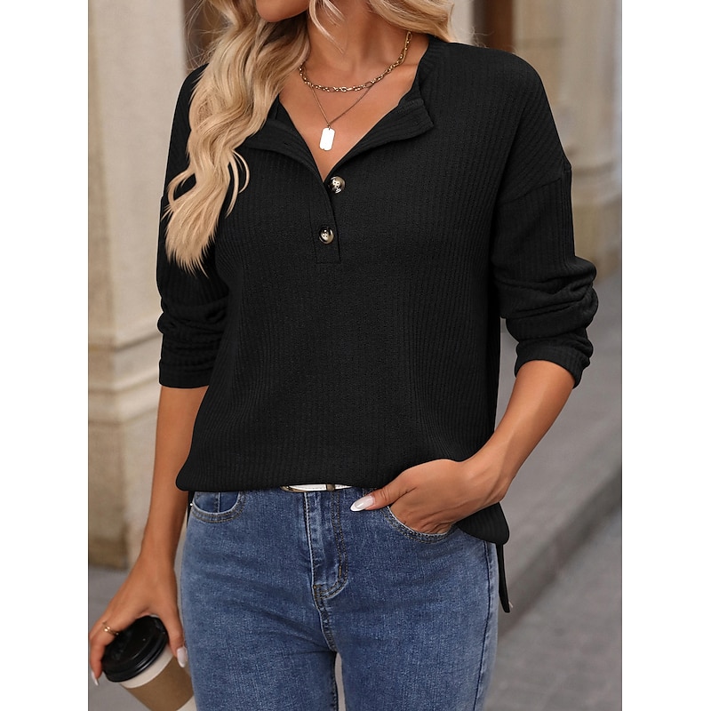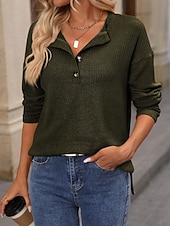 More information about Women's Shirt Blouse Solid Color Stylish Casual Long Sleeve V Neck Regular Tops Daily Buttons Black Pink Army Green Orange Khaki Spring Fall