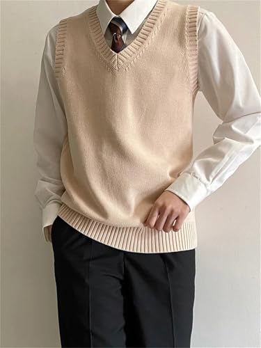 Men's Solid Color Knitted Pullover Sweater Sleeveless V-Neck Business Casual Tops Waistcoat 4