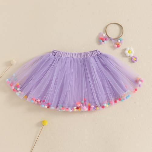 Toddler Girl Tutu Skirt Colorful Floating Pom Poms Tulle Skirts Headband Birthday Tutu Outfit Princess Ballet Dress 6