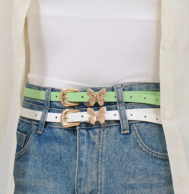• Elegant Design: This women's belt features a sleek and stylish thin waist design with a beautiful butterfly-shaped gold buckle.