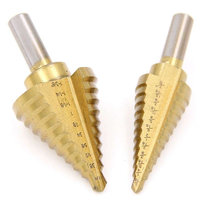 Highlights What is Step Drill Bit · Step drill bits can be used with metal and wood. · Useful for drilling pilot holes in woodworking and sheet metal-based projects. · Allows drilling holes of multiple sizes with same drill bit; can be used to clean away waste material in holes. What does titanium coating do? Titanium nitride (TiN) coating is wear resistant, inert and reduces friction . Use it on cutting tools, punches, dies and injection mold components to improve tool life two to ten times, or more, over uncoated tools.
