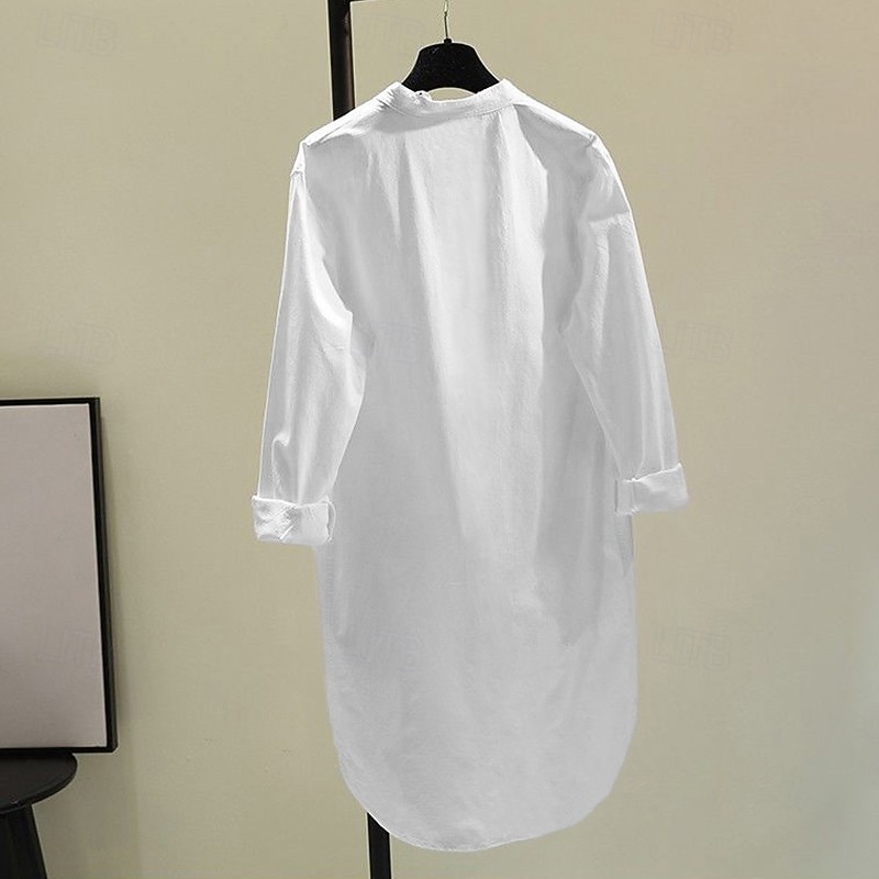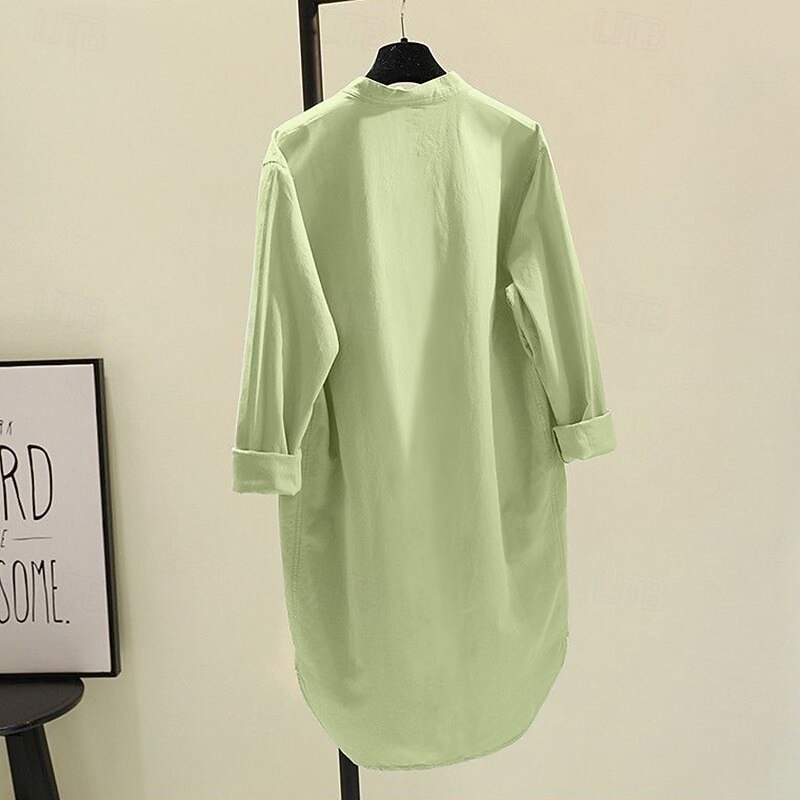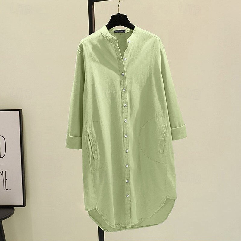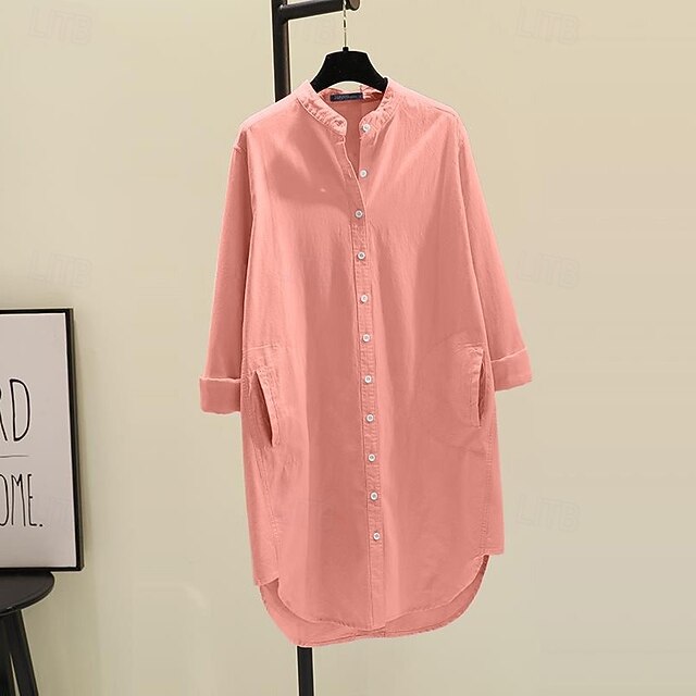 More information about Women's Shirt Cotton Linen Shirts Blouse Plain Modern Casual Long Sleeve V Neck Long Tops Holiday Going out Buttons Pocket White Yellow Pink Green Summer