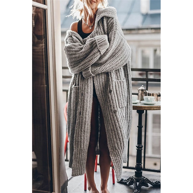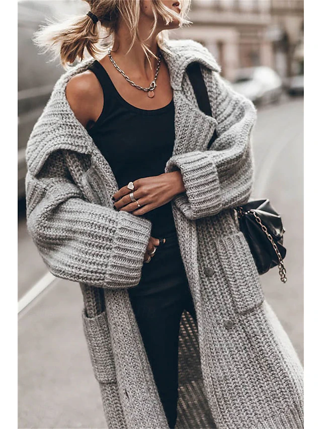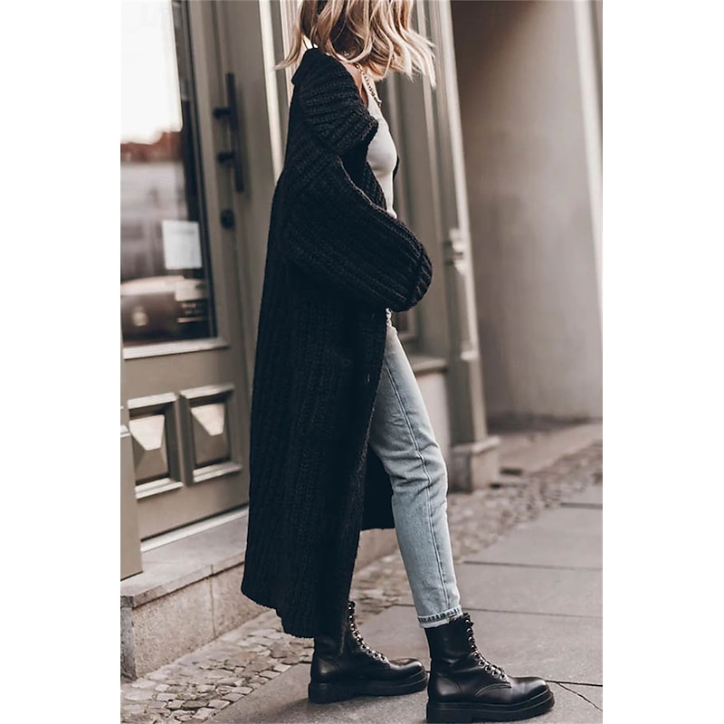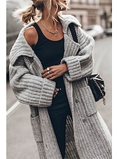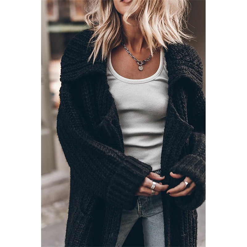 More information about Women's Oversized Cardigan Chunky Cardigan Streetwear Daily Casual Solid Color Open Front Knitted Long Sleeve Long Tops Knit Work Black Gray Fall Winter