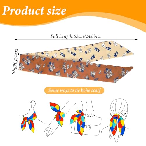 6 Pack Silk Like Head Scarves for Women Stylish Printed Neck Hair Accessories Lightweight Scarves for Hair Wrapping Outfit Decor Handbag Purse Styling Gift for Everyday Wear Parties Travel 5