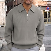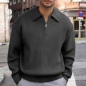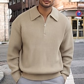 More information about Men's Pullover Sweater Jumper Quarter Zip Sweaters Knit Sweater Ribbed Knit Regular Tops Knitted Plain Half Zip Fashion Casual Vacation Daily Wear Clothing Apparel Fall Winter Black Khaki M L XL