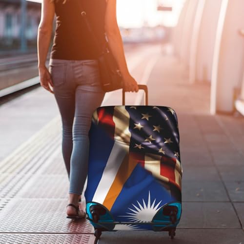 Travel Luggage Cover Combined Marshall Islands And Usa Flag Fashion Washable Baggage Suitcase Protector Fit For Luggage X-Large 7