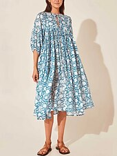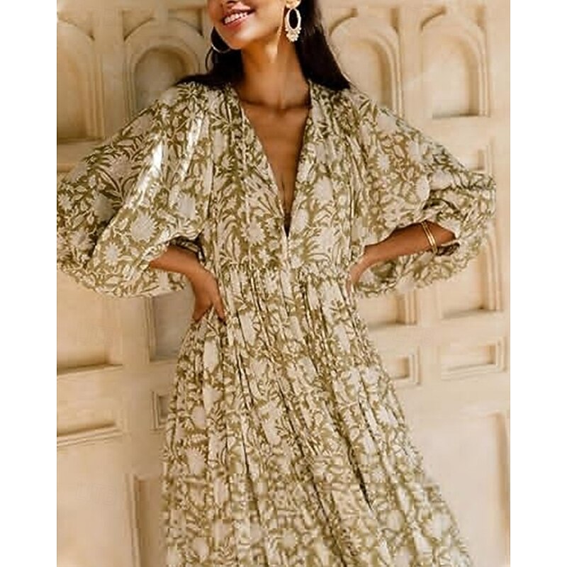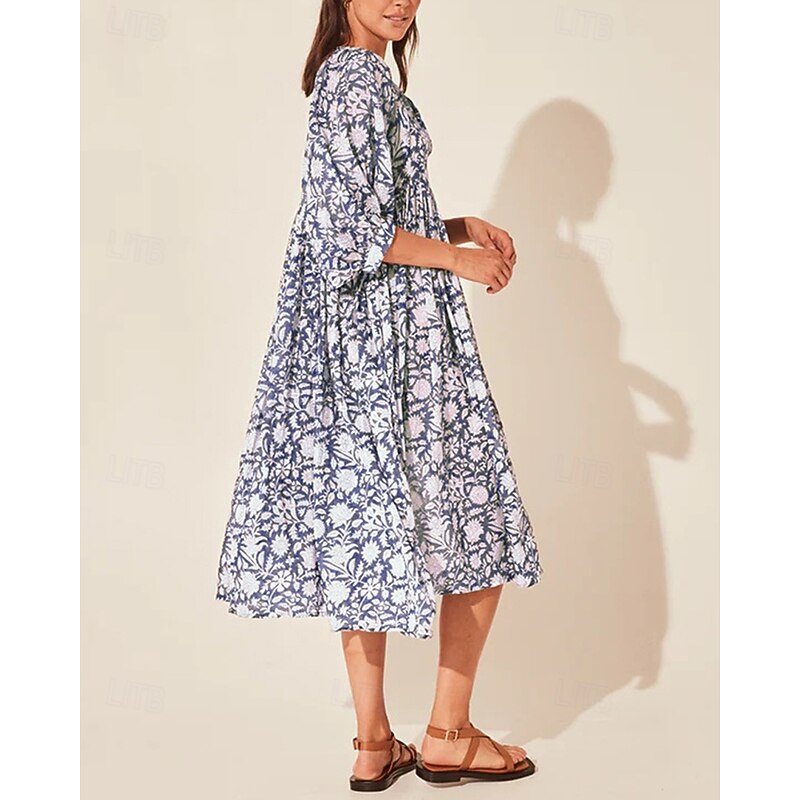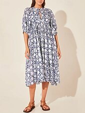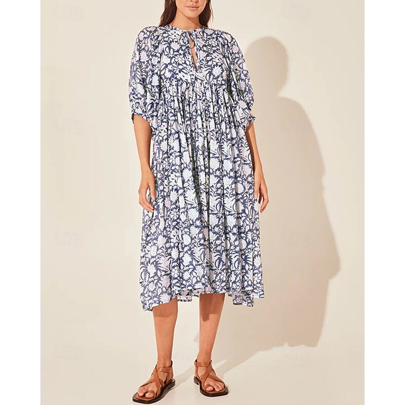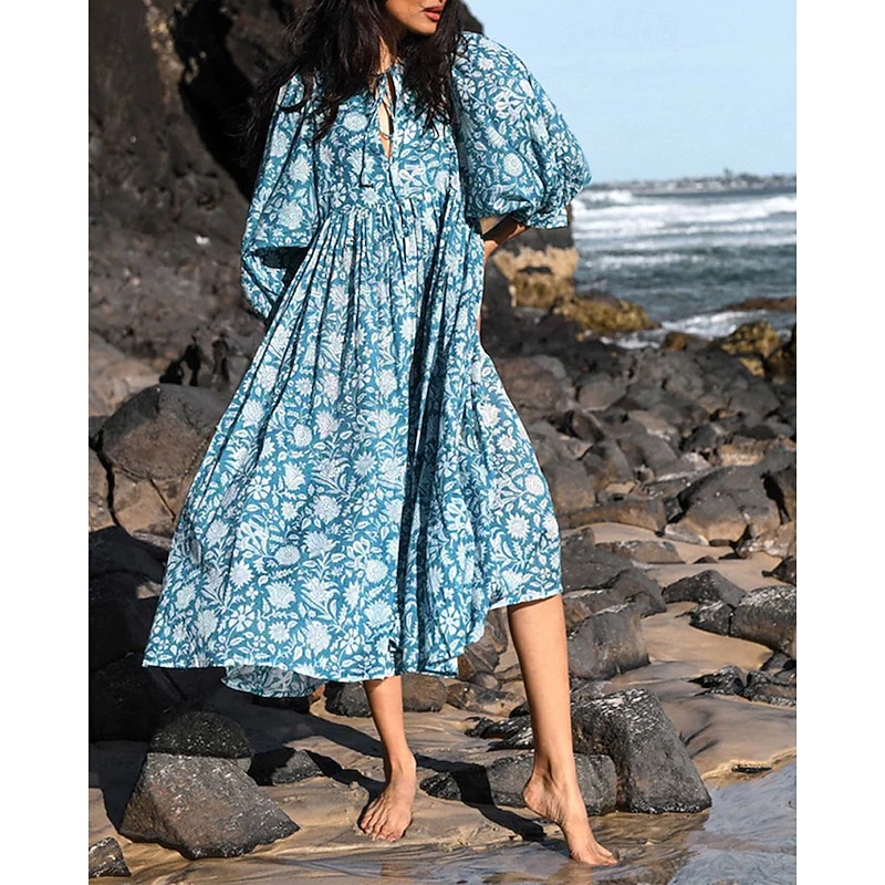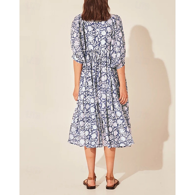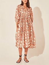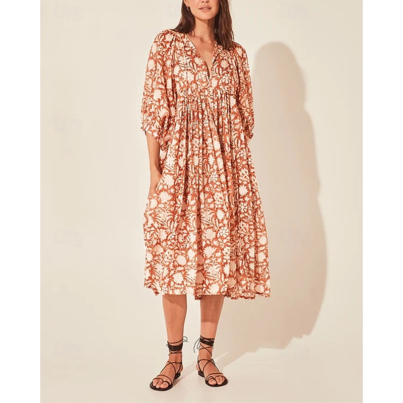 More information about Women's Midi Dress Casual Dress Print Dress Fashion Modern Daily Beach Weekend Regular Fit Floral Half Sleeve V Neck Orange Green Dark Blue Light Blue Spring Fall