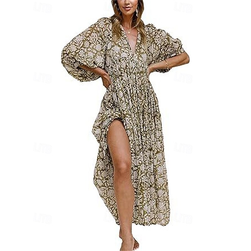 Highlights - Versatile dress suitable for both Spring and Fall seasons - Made from high-quality polyester fabric for comfort - Designed for women, making it a perfect addition to any wardrobe - Ideal for daily wear or for a day at the beach - Features a casual style with a floral print design - Elegant V neck neckline adds a touch of sophistication - Midi dress length for a trendy look