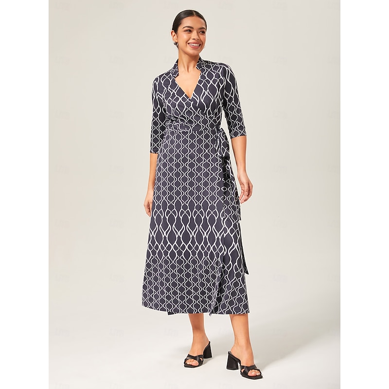 Geometric Print Stretch Wrap Dress 1
