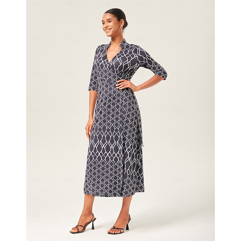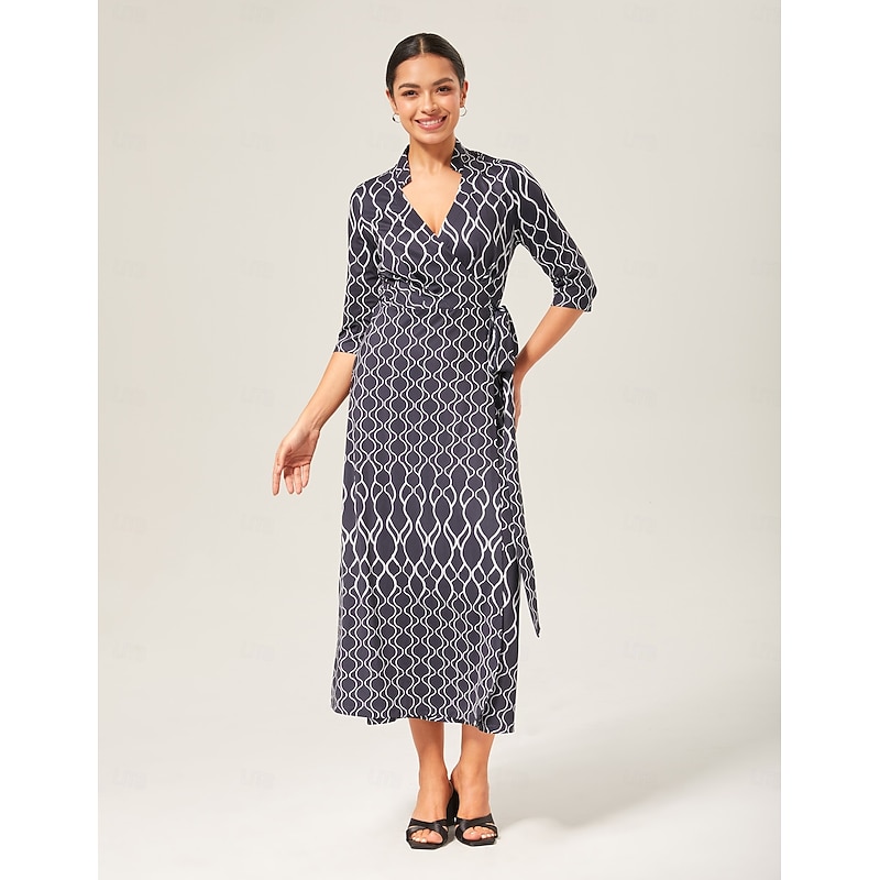 Geometric Print Stretch Wrap Dress 3