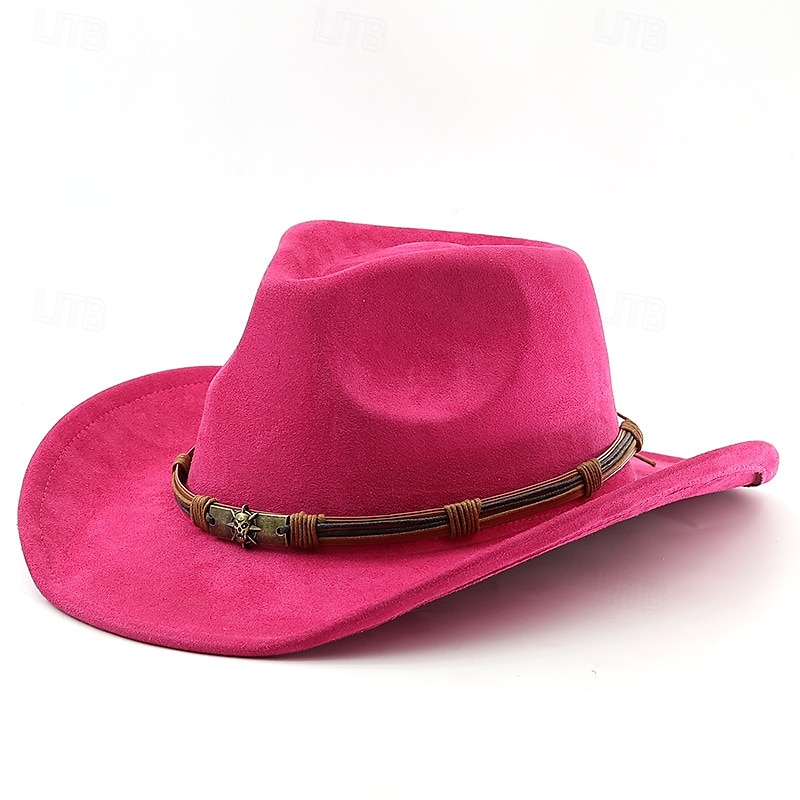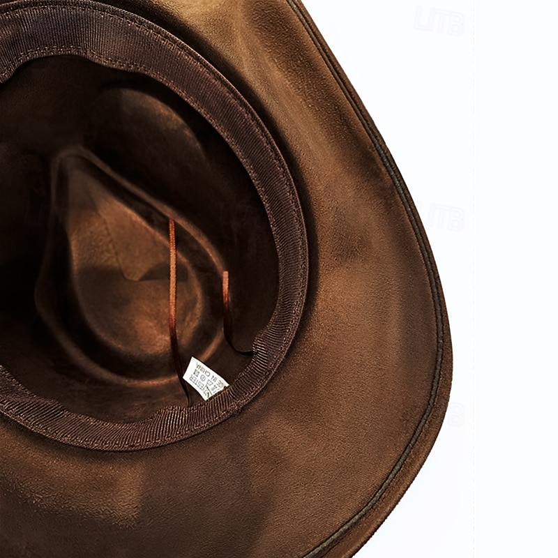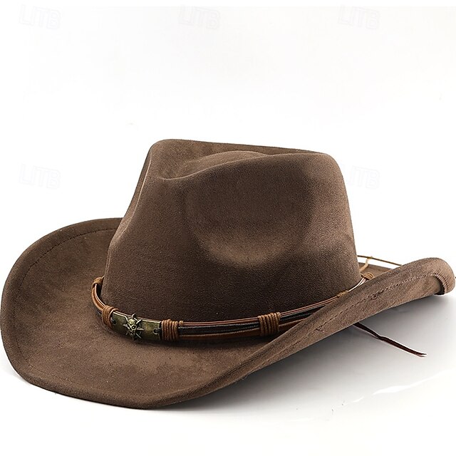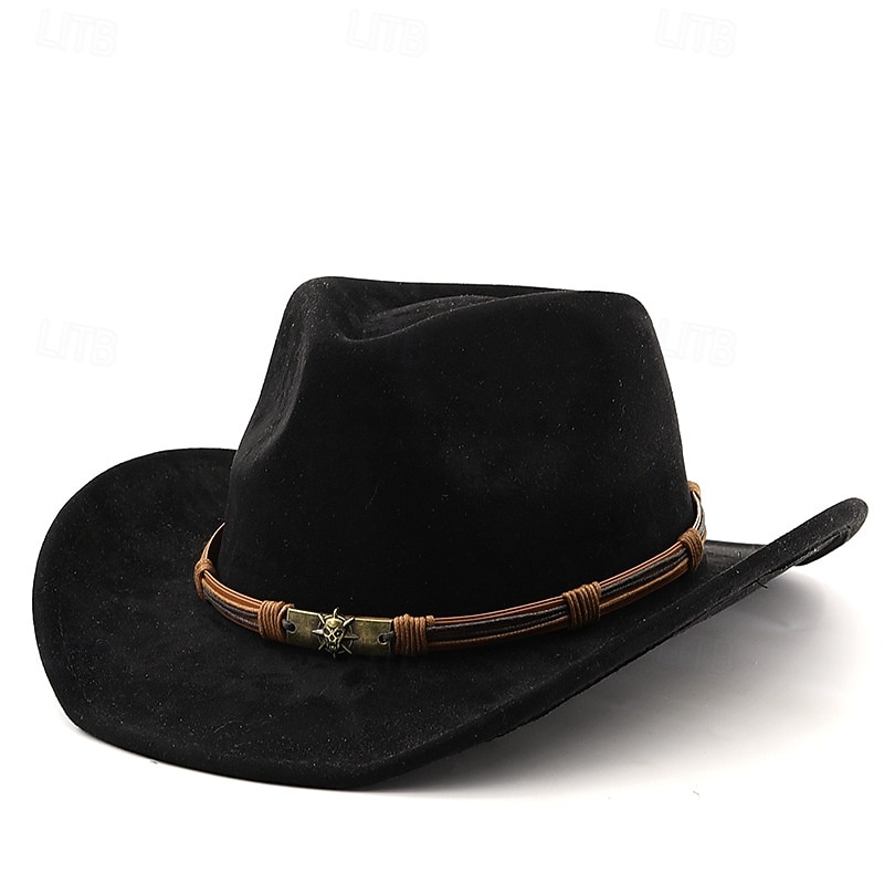Highlights [Fabric] : Crafted from high-quality woolen material, this hat is designed to provide a comfortable and durable wear experience. The faux suede texture offers a soft touch while maintaining sturdiness for lasting use. [Style] : This cowboy hat exhibits a vintage silhouette inspired by 18th century Texas, characterized by a wide, slightly curved brim that provides excellent sun protection and a timeless Western appearance. [Design Highlights] : The hat features a braided leather band around the crown, adorned with metallic conchos for an authentic Western touch. Its solid color adds versatility and sophistication, making it a staple accessory in any wardrobe. [Occasions] : Perfect for daily wear or theme parties, this hat combines functionality with style, making it suitable for outdoor adventures, cosplay, or as a distinctive fashion statement. [Size] : Available in a one-size-fits-all option, the hat fits head circumferences of 56-58cm, ensuring a comfortable fit for most men.