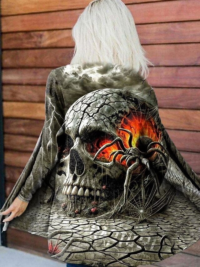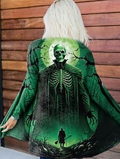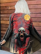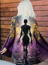 More information about Women's Coat Lightweight Comfortable Print Vintage Fashion Artistic Casual Skull Casual Long Collarless Regular Fit Long Sleeve Outerwear Red Purple Green Spring Fall