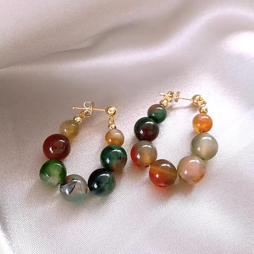 HOT ! Natural Stone Beaded Huggie Hoop Earring,Colorful Gemstone Drop Dangle Earring for Women,Vintage Simple Agate Stone Fairy Earring Aesthetic Jewelry