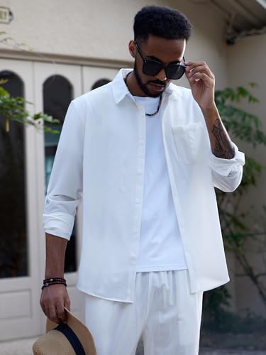 WEEN CHARM Mens Shirts Casual 2 Piece Long Sleeve Button Down Cuban Shirt and Pants Set Summer Beach Outfits 4